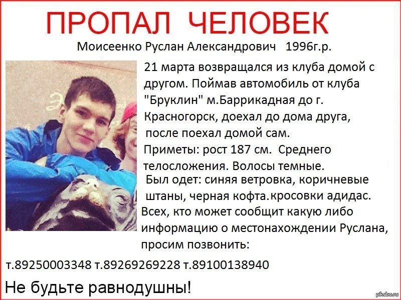 1411 HarryLol 10 лет назад Пропал человек! К сожалению этот пост создан не ради кармадрочерства. Поднимите в топ. Комменты для минусов внутри Пропал человек Красногорск Помощь Поиск людей