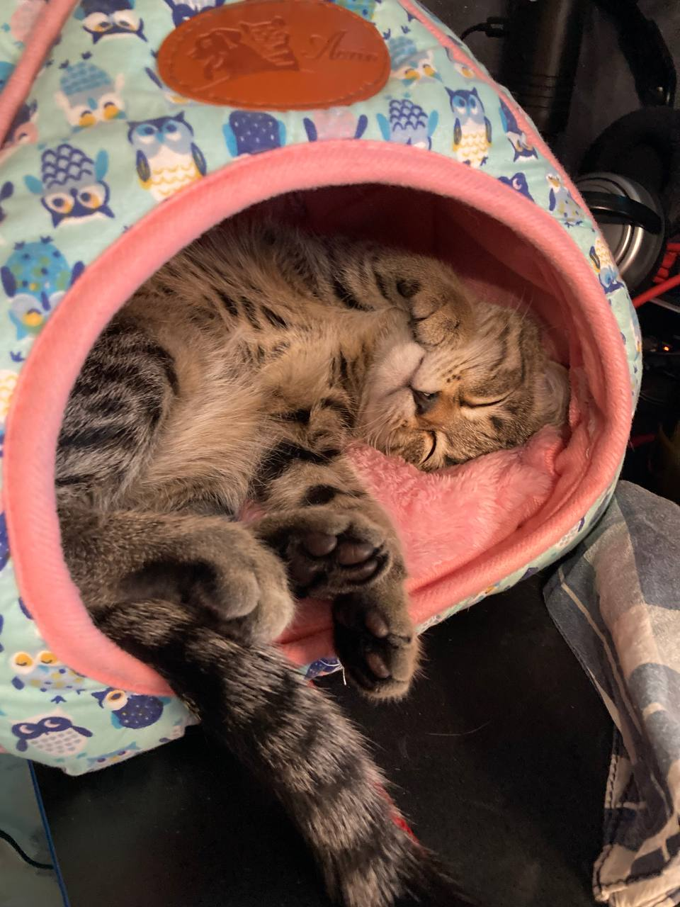 Ей 5 месяцев и она очень пуглива. Кошка сейчас на больничном и нуждается в правильном уходе и лечении.