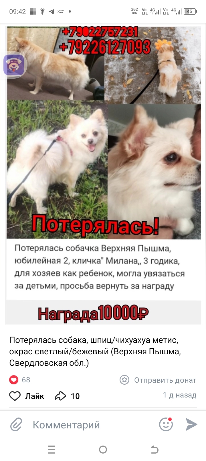 12 user10312184 Пропала собачка 10 месяцев назад Верхняя Пышма Пропала собака Пропажа Потеряшка Собака Побег Кража Милана Длиннопост Картинка с текстом Ещё 0