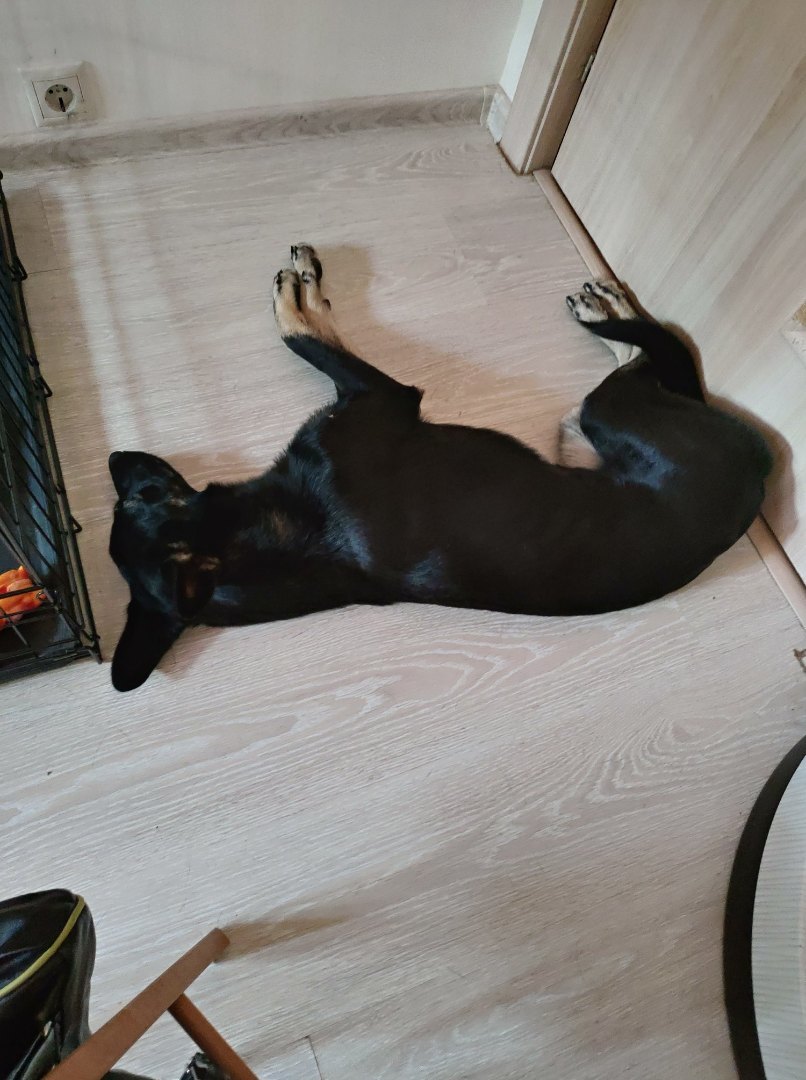 Пропала собака. Черная длинношёрстая дворняжка, уши стоят. В розовом ошейнике, кличка - Каппа, девочка. От салюта убежала с площадки на Вековой, побежала, по словам прохожих в сторону Абельмановской. Есть чип.