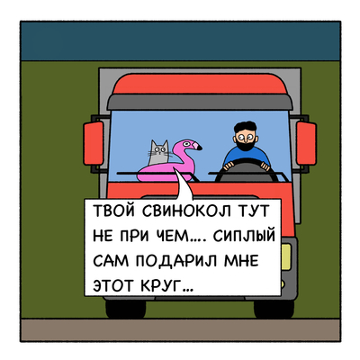 Кот Вулкан и дальнобой едут далеко-далеко. В дороге дальнобоя развлекает очень эрудированный и умный кот Вулкан.