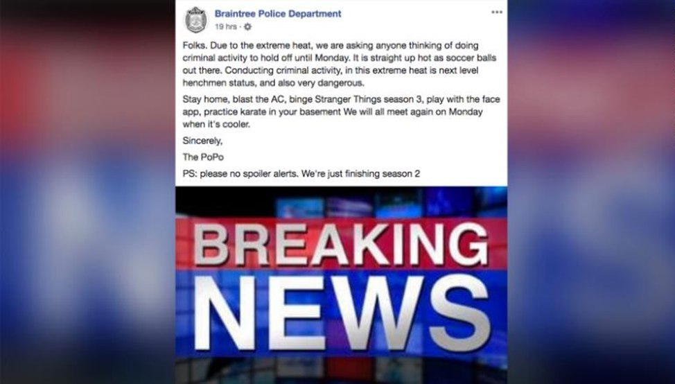Полиция Массачусетса(США) просит жителей воздерживаться от преступлений, пока не пройдет аномальная жара.