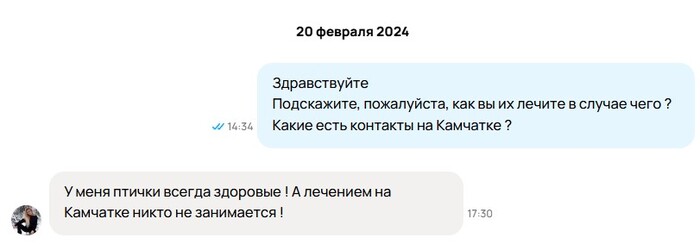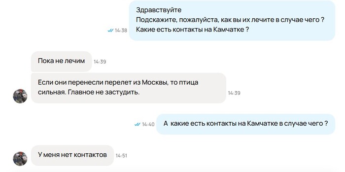 Кто-то скажет - это же очень очевидно и поверхностно! Но, как оказалось, многие и не думают об этих последствиях. Как я говорил выше: "завести игрушку поиграться", а потом будь что будет. Мои скрины диалогов с продавцами попугаев на Камчатке: