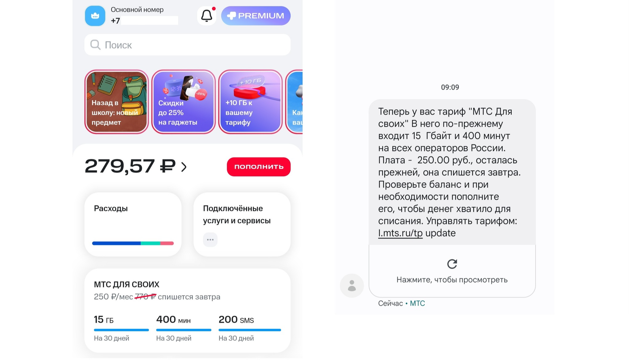 Сегодня, как и ранее предупреждал МТС через СМС, меня перевели на тариф "МТС для своих".