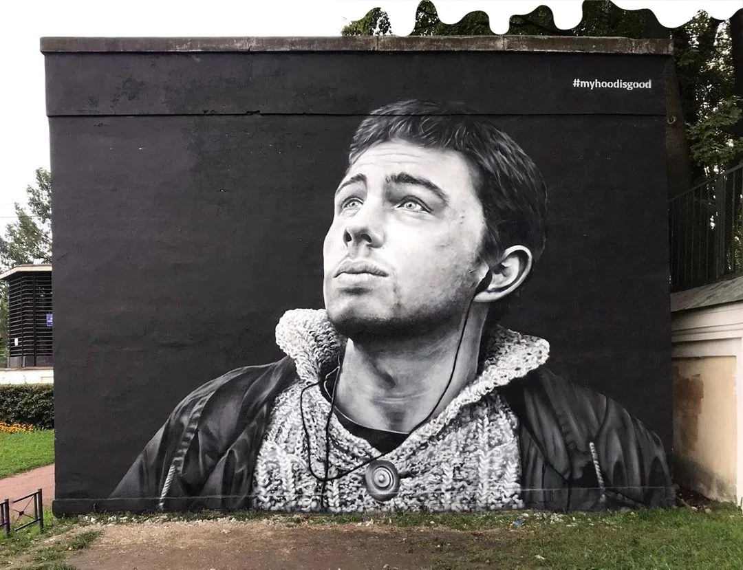 Никита решил рисовать Гагарина. Помню, что он очень ответственно подошёл к этому. Распечатал кучу фоток Юры, потом сделал большие трафареты.