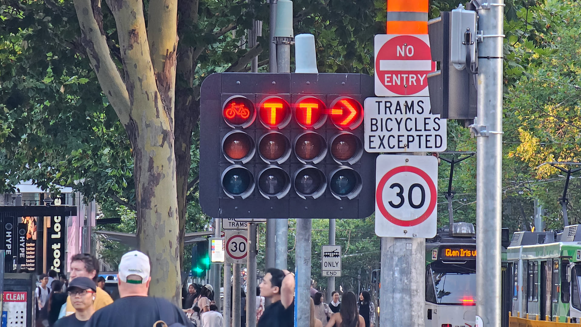 Это известный светофор на перекрёстке La Trobe и Swanston st в центре Мельбурна.