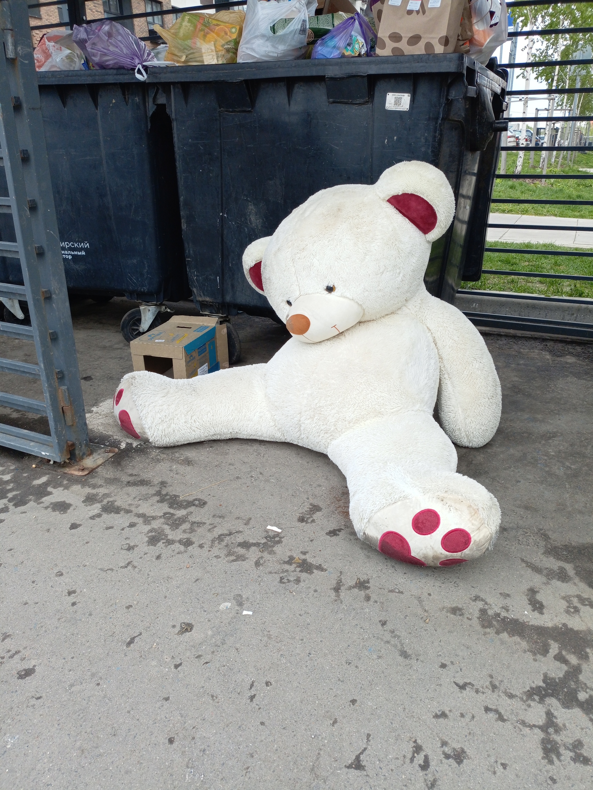 9 romanzhivo Прошла любовь, видимо 7 месяцев назад [моё] Грусть Грустный юмор Белый медведь Выкинули Плюшевый медведь Мусорные баки Фотография 1 Ещё 0