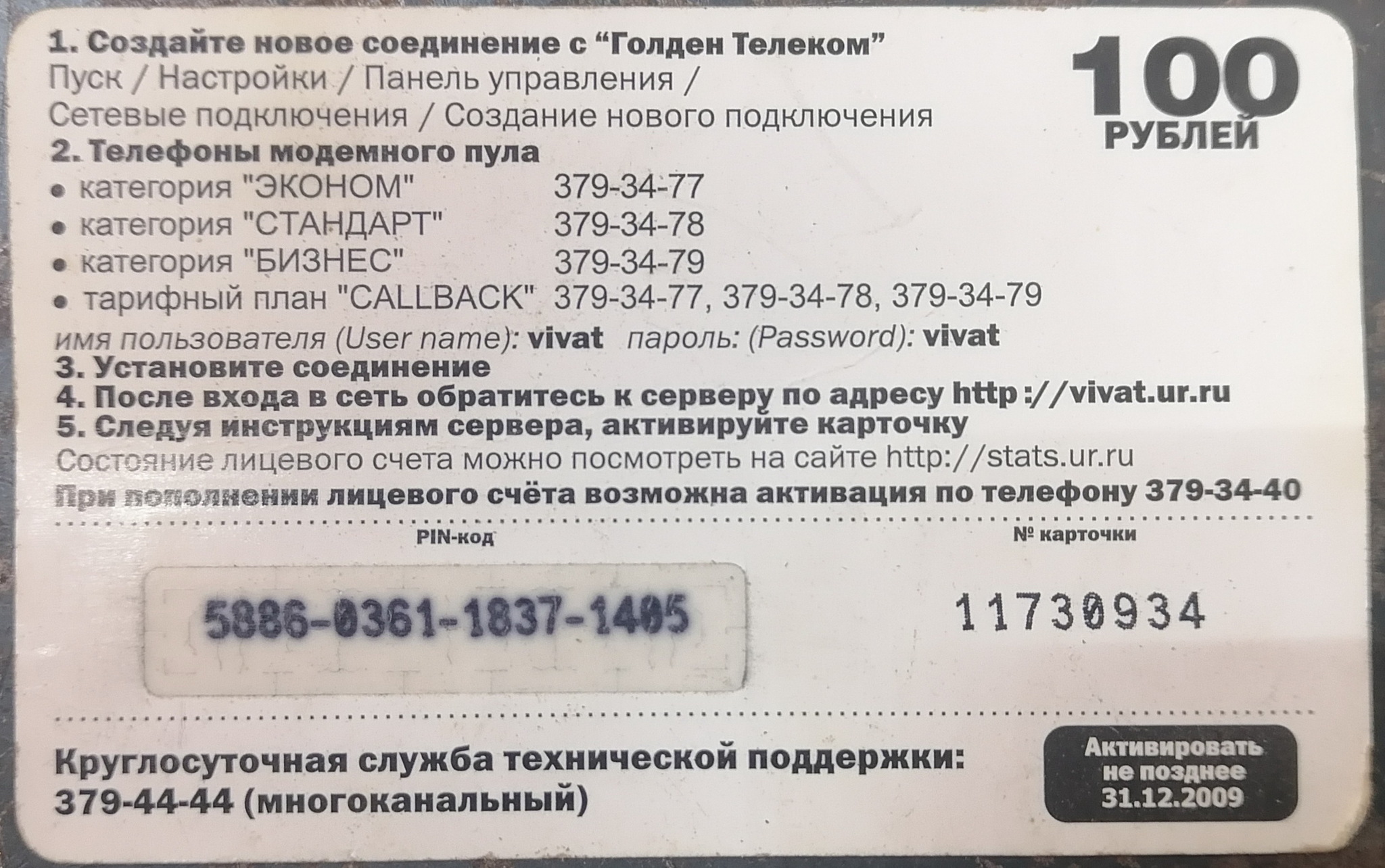 Что касается оплаты, то здесь тоже были свои особенности. Интернет предоставлялся не безлимитно, а по тарифам, где каждая минута онлайн стоила определенную сумму. Чтобы продолжать пользоваться сетью, нужно было регулярно пополнять счет. Для этого использовались пластиковые карты с уникальными кодами доступа, которые можно было купить в магазинах электроники, киосках или отделениях связи. Эти карты выглядели как дисконтные карты магазинов: на них был указан срок действия, сумма зачисления и скрытый код, который нужно было вводить в специальной программе или на сайте провайдера.