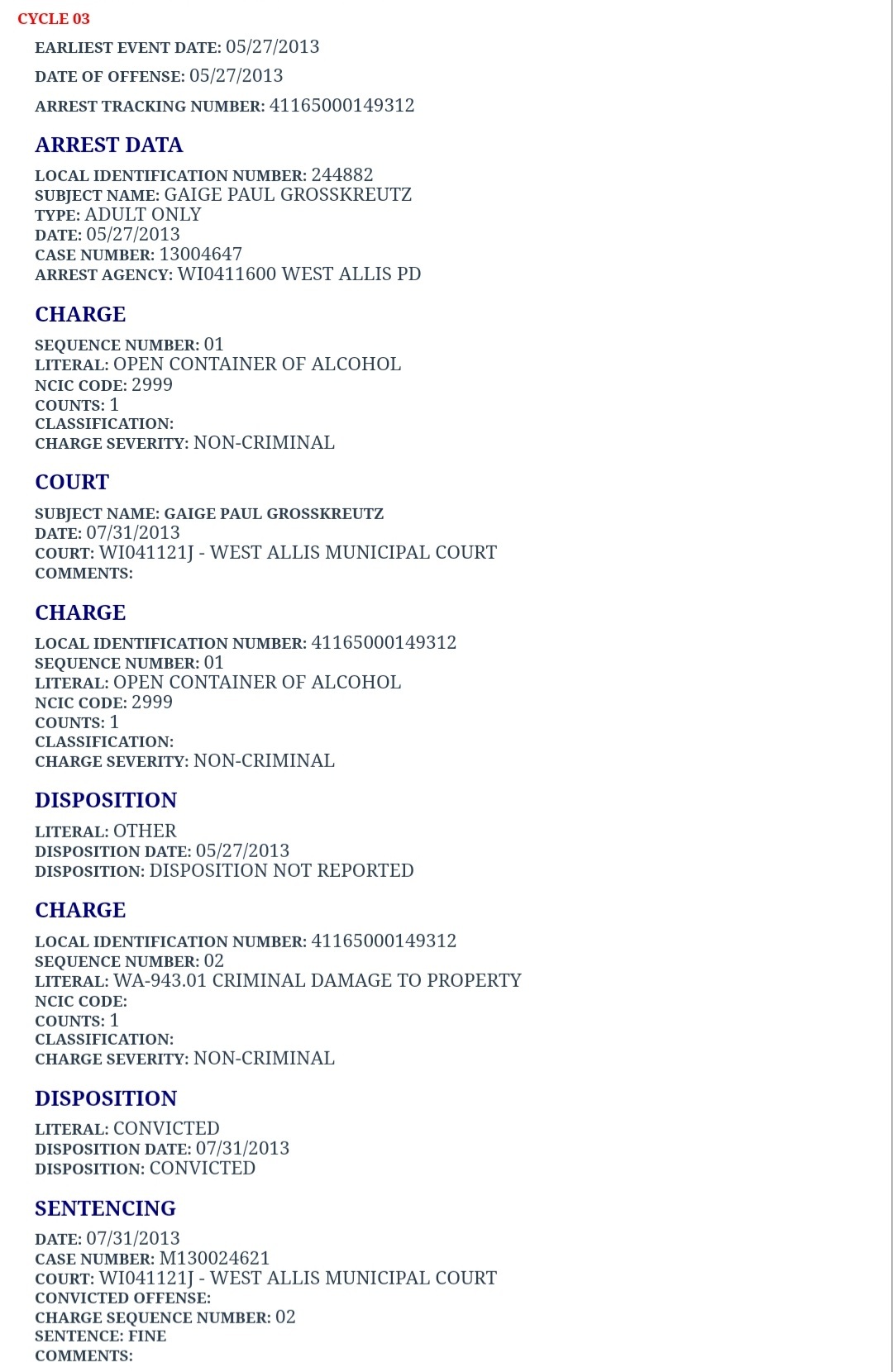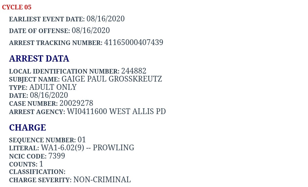 История со стрельбой Риттенхауса уже известна, на слуху и разобрана, однако в прошлых постах я говорил что Гайдж Гросскройц не был судим - и это ошибка, которую стоит исправить (так же, как и его возраст - ему уже 28, а не 27. День его рождения в ноябре):