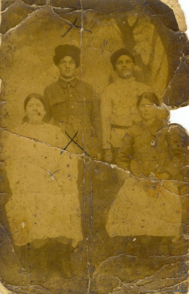 339 DoloN Прошу Лигу Гуру Фотошоперов, отреставрировать фото. 10 лет назад Фотографии более 100 лет сохранилась как видите очень плохо, а это память. Слева стоит мой прадед Илья, а справа его брат Андрей и бабушка Настя. [моё] Фотография Казаки Дон Предки