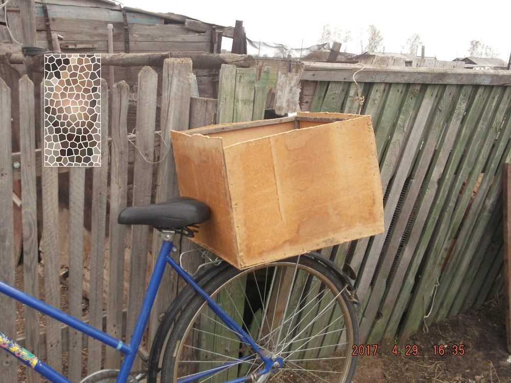 да вон же проволока на заборе висит- ей и прихуячь. можешь еще валенок между ящиком и багажником подложить чтобы комфорта при езде было больше, а то стучать может