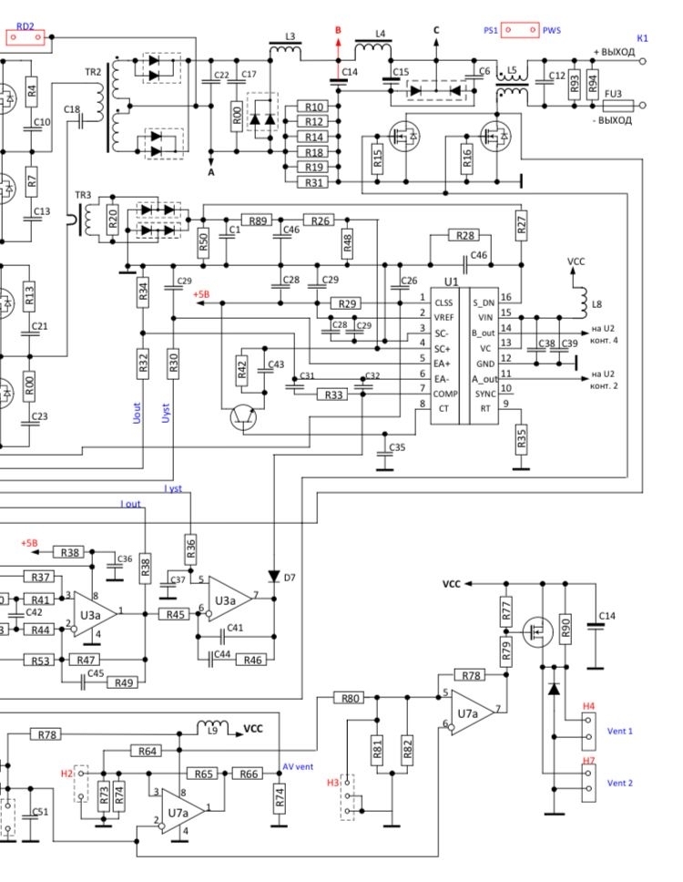 Таких блоков питания 2, содержат в буферном режиме аккумуляторные батарее, соответственно ток не более одного ампера. За го аналогичная ситуация, дроссель перегрелся отпаялся и ушёл в обрыв. Диод проверил, работает