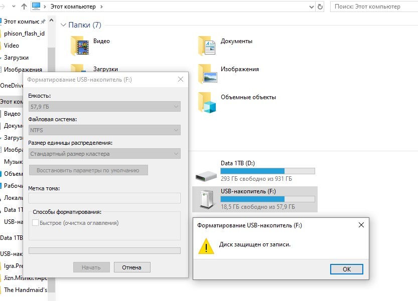 Здравствуйте. Нашёл флешку, отфотографировал и выложил в местную группу, но за месяц никто не откликнулся. Поэтому было решено использовать устройство в личных нуждах. Теперь к делу. На флешке имеется 3 папки с сериалами, все файлы нормально читаются, но не удаляются, флешка не форматируется, пишет диск защищён от записи. В диспетчере дисков пишет только чтение. В программе для этого контроллера флешка не отображается, при нажатии на кнопку setup просит пароль.Контроллер au6998sn, память sdinbdg4-64g. Собственно вопрос: что можно с ней сделать?