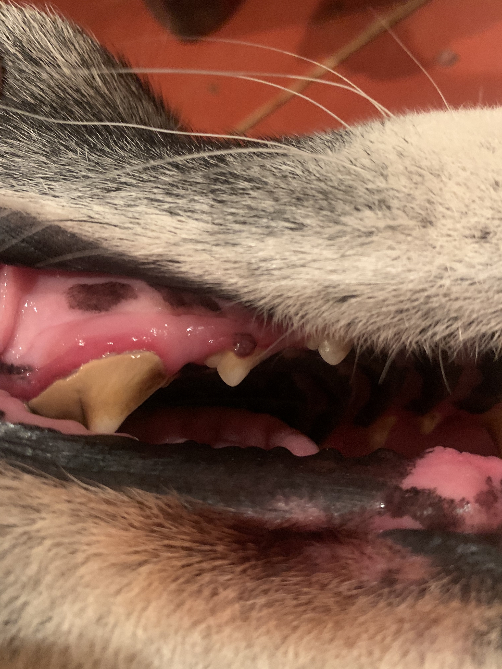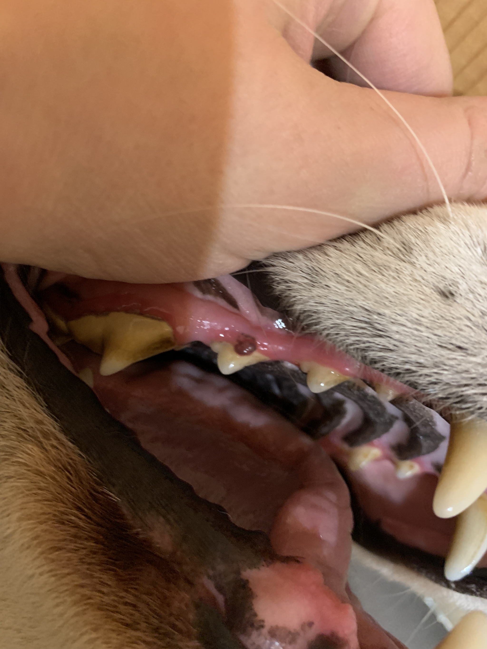 Добрый день. Случайно обнаружила у собаки (кобель 6 лет, не кастрирован ) в пасти странную шишечку на десне прямо над зубом. Собаке она не мешает. Нет ни воспаления, ни язв на ней. Выступает на пару миллиметров. Была ли пигментация десны до ее появления, не известно. Подскажите, пожалуйста, стоит ли беспокоиться?