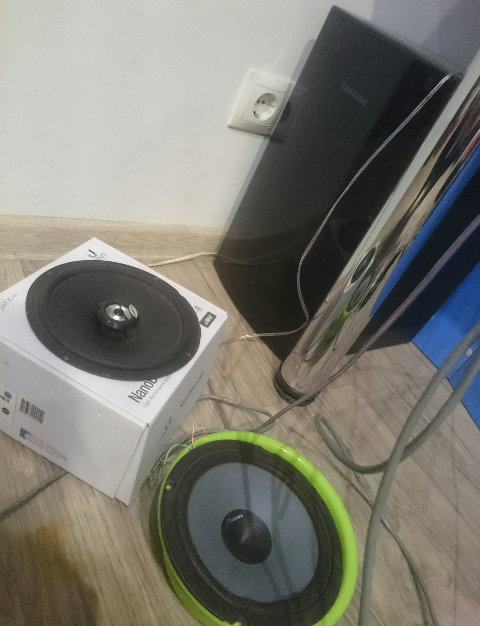 Пассивный сабвуфер Samsung (который был активным и беспроводным, пока я не выкинул его потроха.) Заявлено 50w.🤗