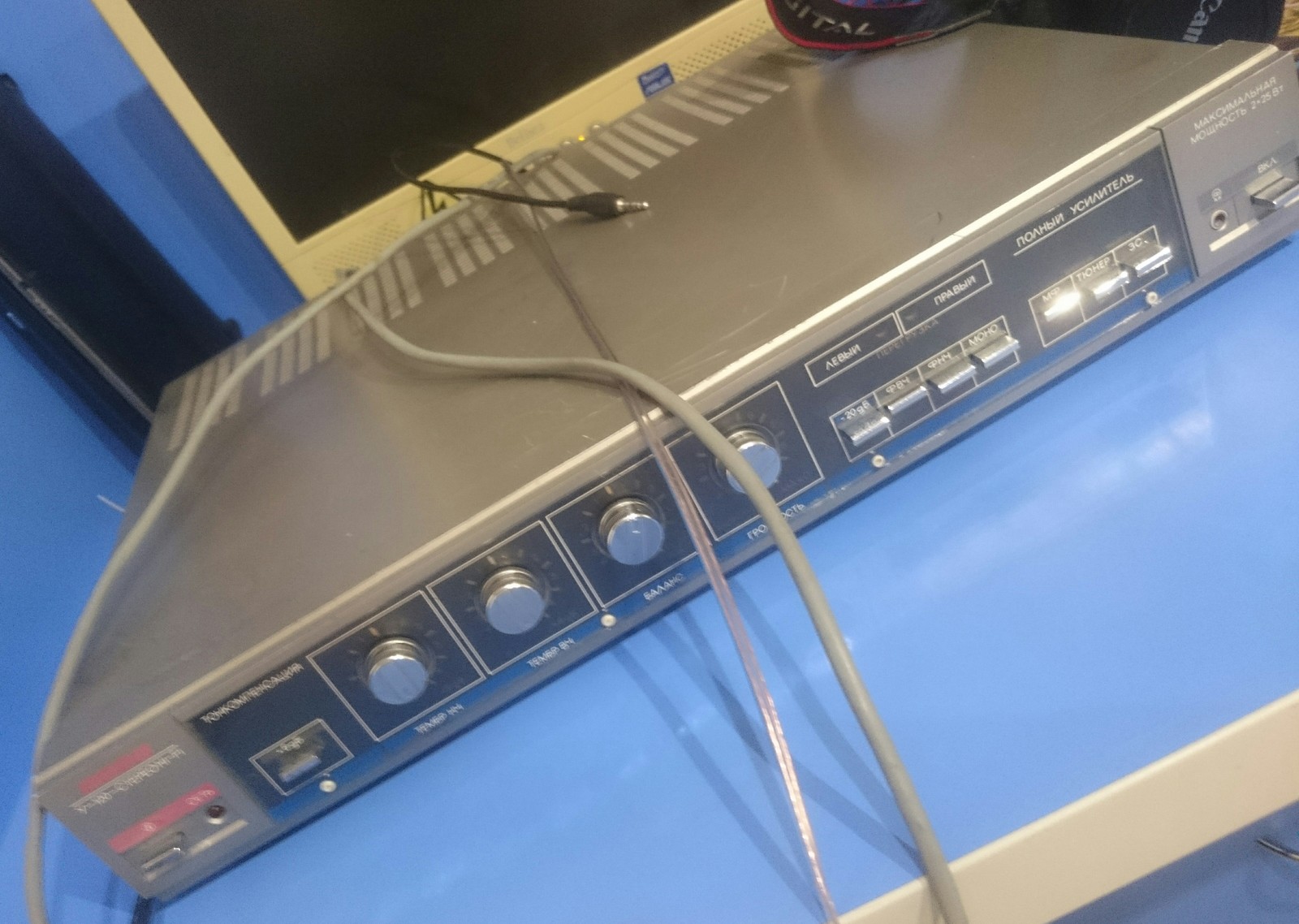 Подключенная витой парой к 4 динамикам и пассивному сабвуферу.