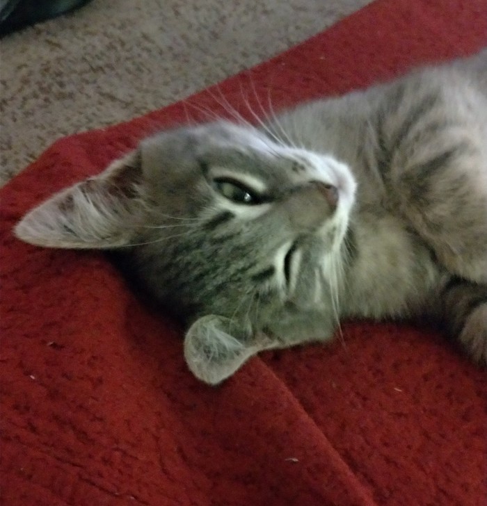 Прошёл месяц со дня находки.Мелкий освоился,научился ходить через кошачью дверь,спускаться в цоколь .Короче растет. Всем добра и 🐈