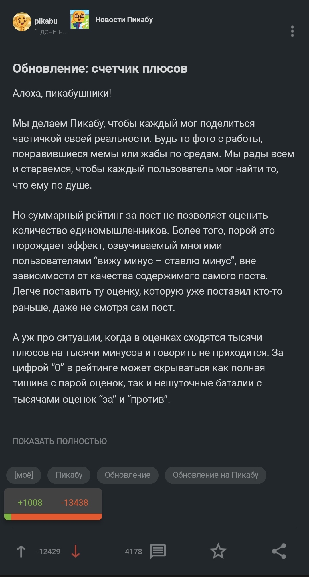 Эй, @admin, @pikabu, ну как, посмотрели? Пикабу высказался, почти весь, целиком. Ну что, прислушаетесь к своей собственной аудитории?