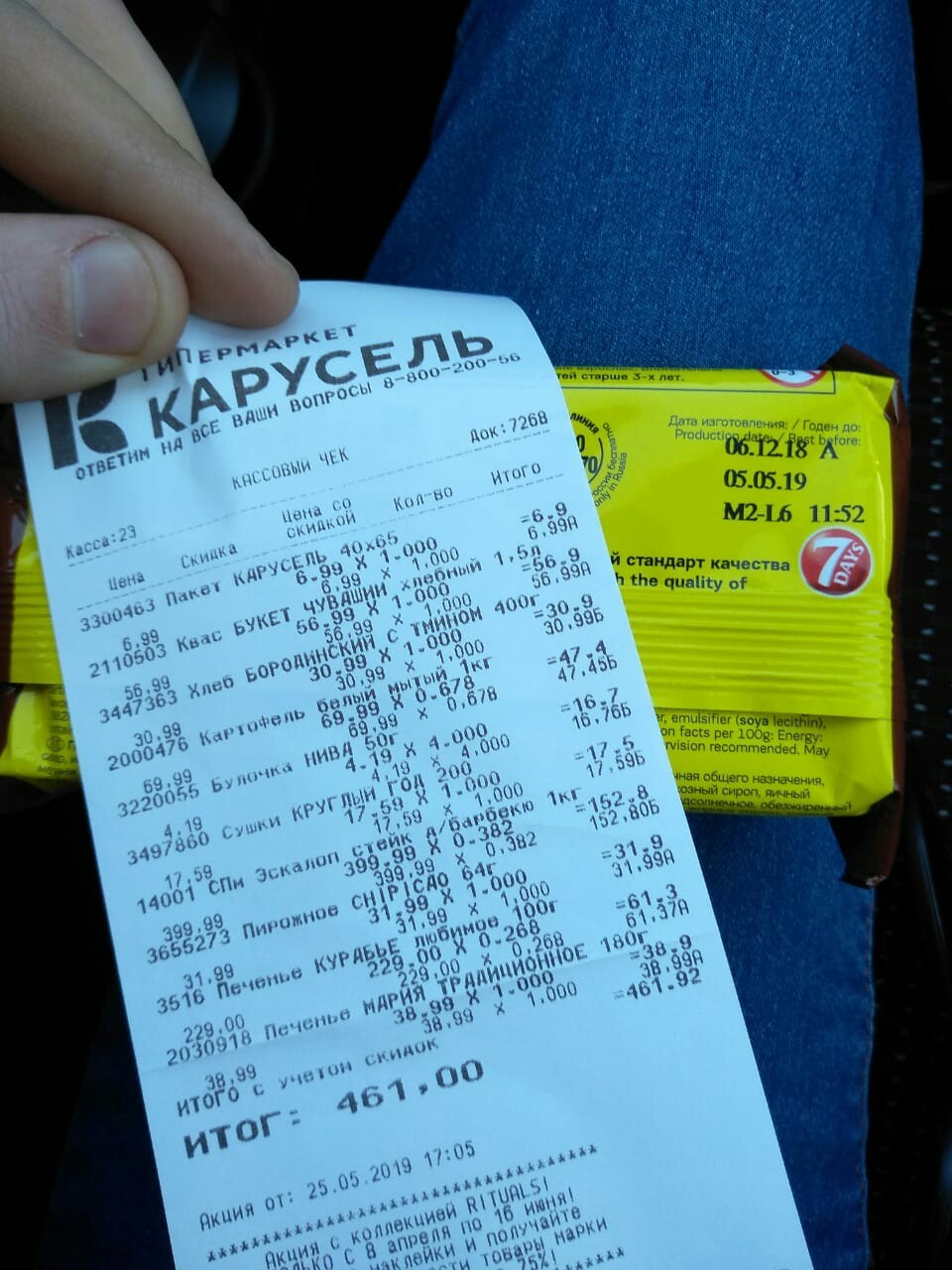 Вчера по пути из города решили заехать в новый гипермаркет Карусель, который раньше не посещали. Маркет очень большой и видно что с прилавками и выкладкой товара очень стараются большой ассортимент. Так вот ближе к делу, ребёнок увидел на прилавках пирожное Chipicao очень рекламируемый на канале детском Карусель ( это совпадение) раньше его нигде не встречали:( . Мы его конечно взяли благополучно оплатили ещё карту оформили скидочную так как удобно по пути на дачу заезжать и уехали. По пути на дачу ребёнок попросил открыть это самое пирожное и хорошо, что супруга посмотрела на дату, а там на 20 дней просрочка. Меня бомбануло так что я развернулся и решил это не оставлять просто так, когда я зашёл в магазин вновь отправился к этому прилавку и там я увидел, что просроченный товар нагло замешан в нормальный, то есть с умыслом смешали его ещё и акцию сделали на него. Администратор сразу начала отговаривать писать в книгу жалоб, а обменять на не просроченное, и что жалоба ничего не решит :)) ага говорю давай книгу и идите убирайте товар. Жалобу написал, фотки сделал, в потреб надзор тоже супругу попрошу написать. Город Казань, Оренбургский тракт.