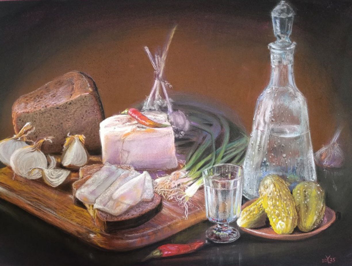 Натюрморт сухой пастелью на бумаге "Пастельмат".