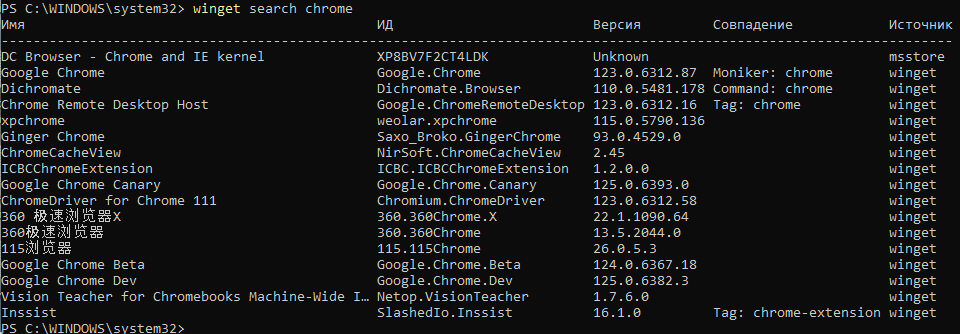 Winget list выведет полный список программ, установленных на компьютере (включая программы, установленные не через winget).