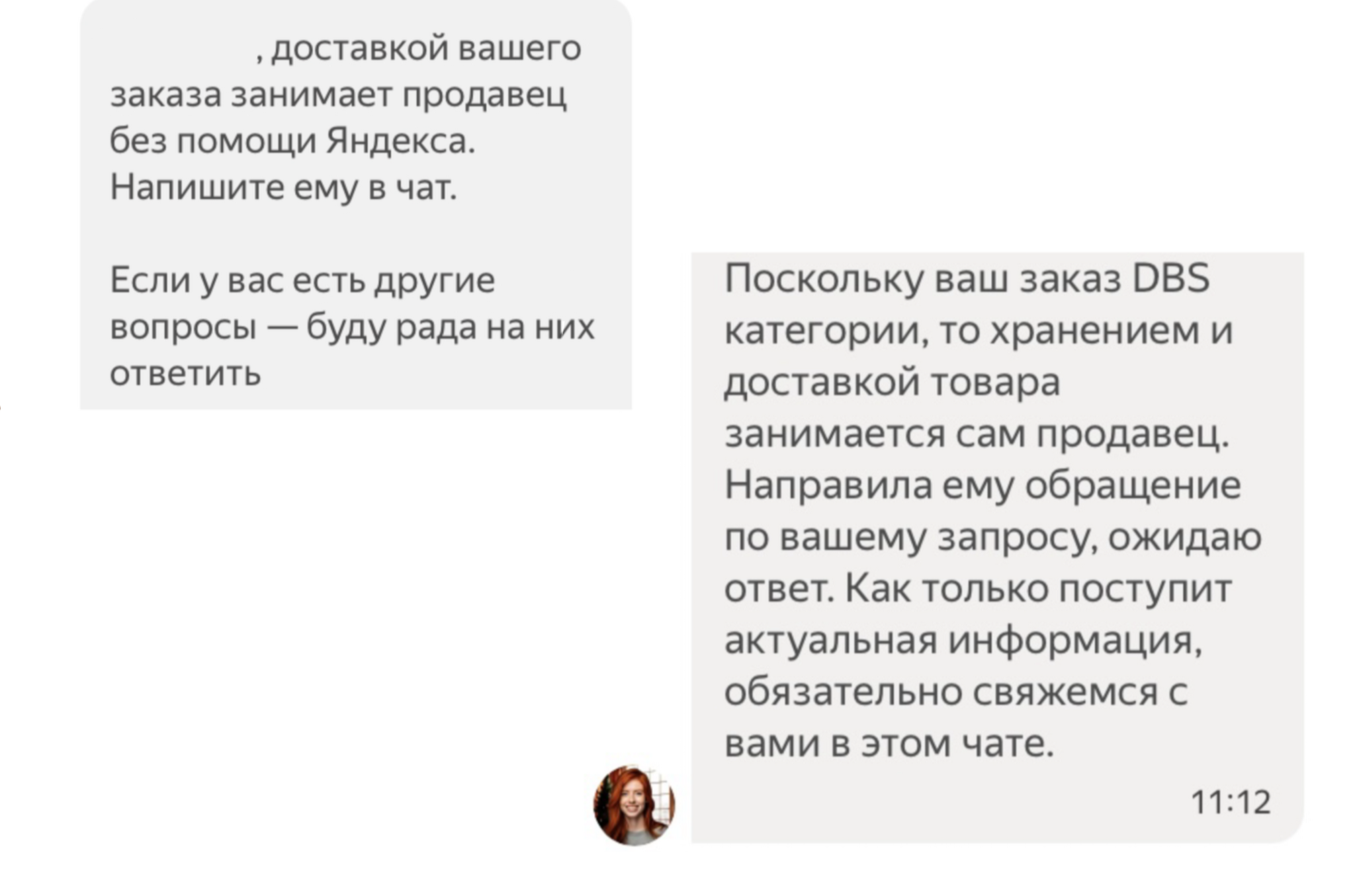 Каждый разговор с поддержкой Яндекса начинается с того, что виноват продавец, хотя я не коим образом не встаю на защиту продавца и призываю всех воздержаться от заказов у данного селлера. Однако, преимущественно, я думаю, что виноваты сервисы Яндекса.