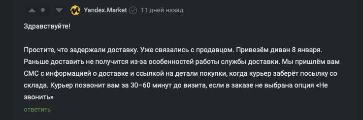 Я сделал заказ дивана на Яндекс.Маркете и товар не был доставлен вовремя. Когда я пытался связаться с продавцом, Яндекс закрыл наш чат и изменил дату доставки.