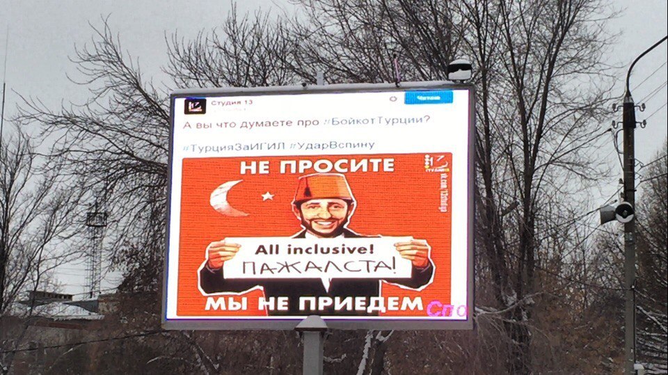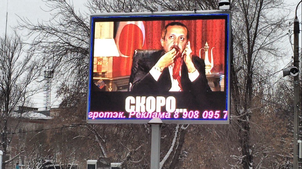 12 barck #проститурция в массы 9 лет назад Рекламный экран в г.Коркино, Челябинская область, 10 января 2016г. Экран от Интерсвязи. [моё] Моё Путин Реджеп Эрдоган Владимир Путин Турция Барак Обама Пропаганда Длиннопост