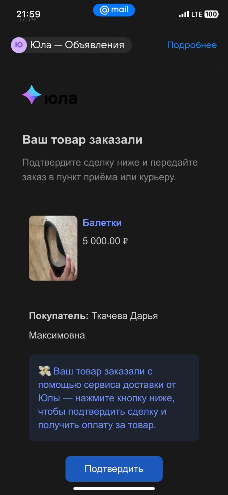 Жена разместила на продажу свои почти новые балетки на площадку Юла.