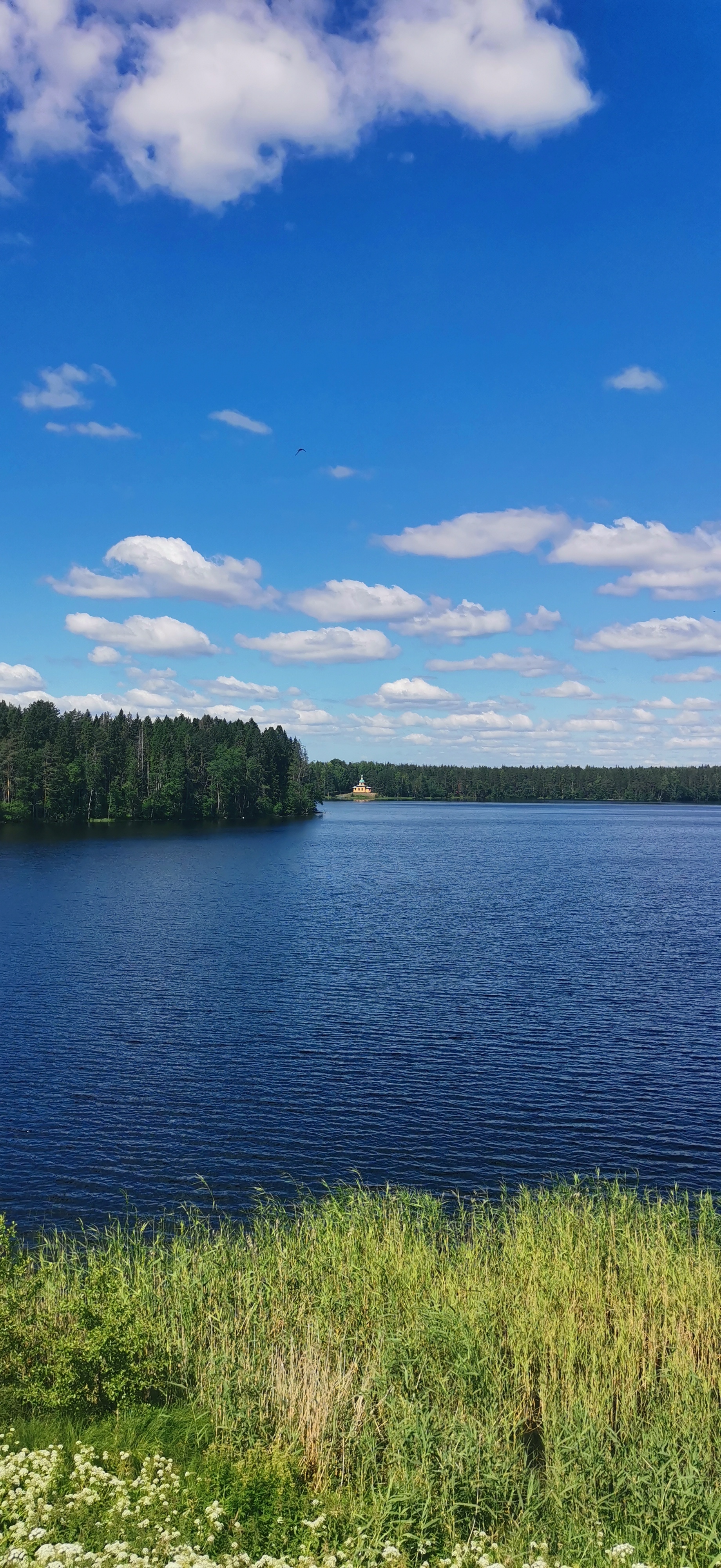 Надалеко от Лодейного поля Рощинское озеро. Вид со стороны Александро-Свирского монастыря на Пантелеймоновский скит.