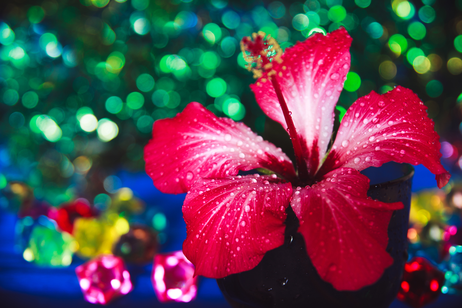 Мне хотелось получить интересное боке и весь цветок в зоне резкости. Как ни старался цветок полностью резким никак не получался. Проблема в том, что когда прикрываю диафрагму, элементы создающие боке, оказываются излишне резкими. Скорее всего, для решения необходимо отдалять снимаемый объект от фона. Названия цветка не знаю.