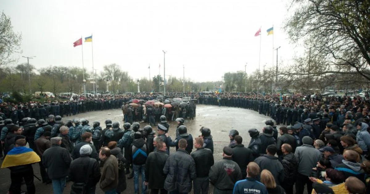 Сторонники движения « антимайдан» ( те самые «300 спартанцев») были окружены толпой представителей « правого сектора».
