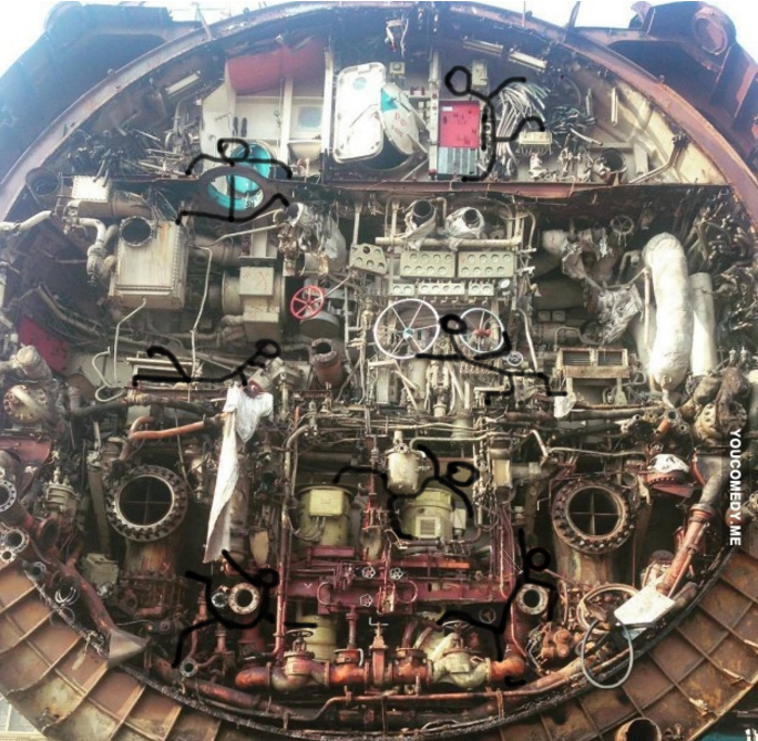 Зачем проблемы создавать для матросиков? Зачем эти клаустрофобские лазы внутри для мышей? Зачем висячие кровати-доски над торпедами? Подлодочка должна быть такая