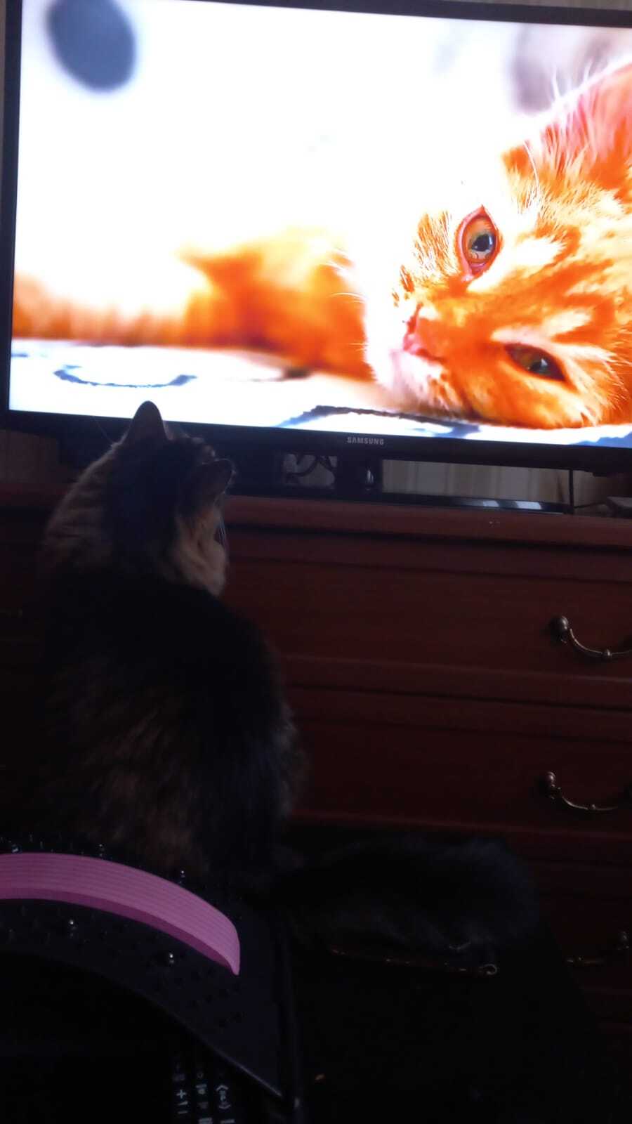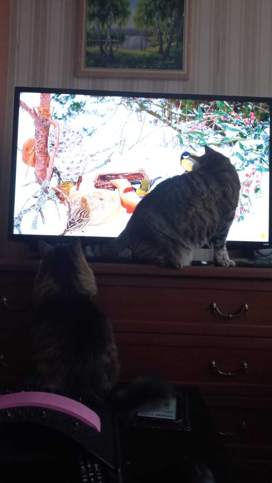 Включено на ютубе кошачье тв. У Василия не поддельный интерес к мышкам песчанкам.