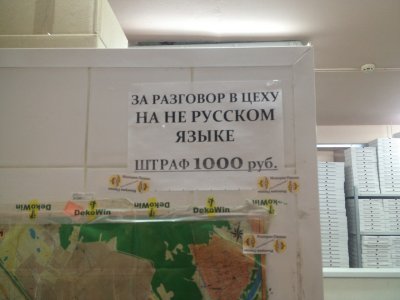 ничего что это не Украина? у нас еще рублями не штрафуют. А какой-нибудь подмосковный цех, где работают скорее всего выходцы из средней Азии?