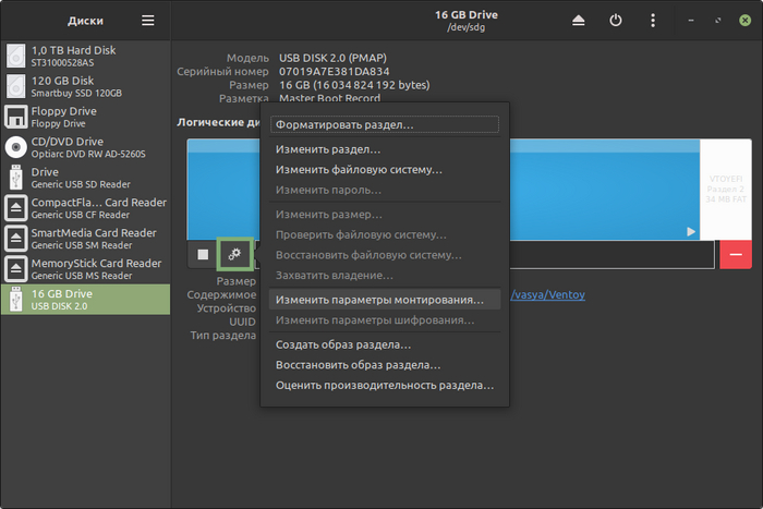Жмем на кнопку с шестеренками и выбираем "Изменить параметры монтирования";
