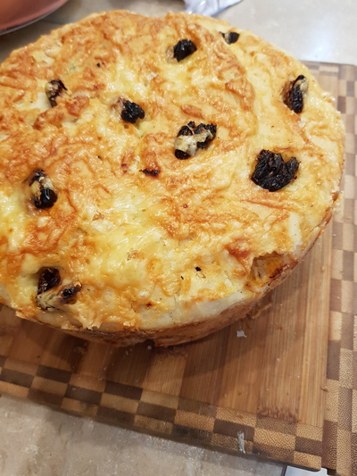 Во втором хлебе на корочке получились шкварки их панчетты:). Было как минимум интересно. Но в следующий раз попробую добавить бекон или панчетту внутрь, чтобы не сохло. Сочетание чеснока, петрушки сладкого перца получилось удачным. Можно оставить как есть.