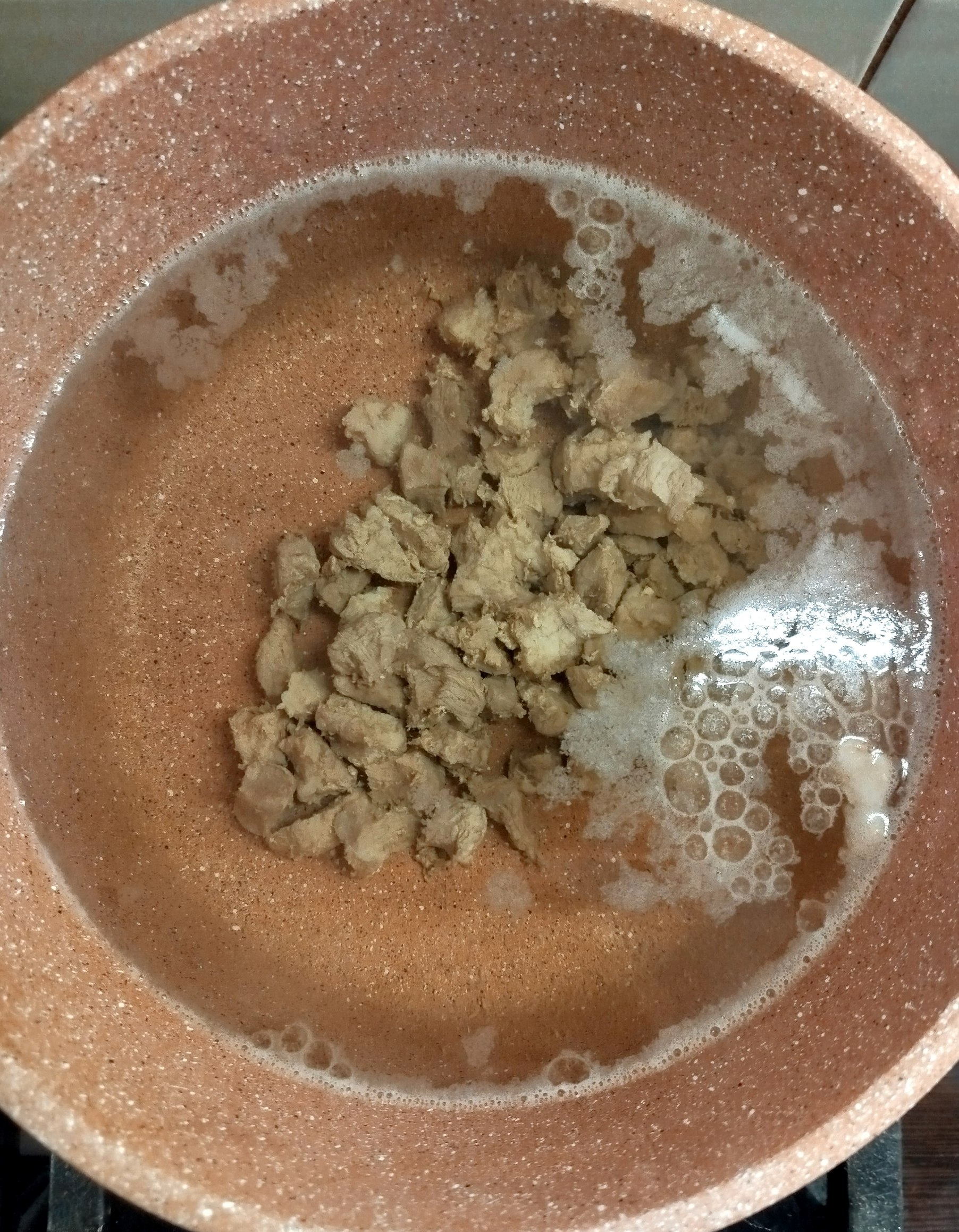 Отвариваем мясо в подсоленной воде, снимая пену, по другому шум, видимо от этого Шумовка взяла своё название, но не точно :) У меня свинина в этот раз. Порезана не крупно, но и не мелко, чтоб мог комфортно кушать ребёнок 5-ти лет.