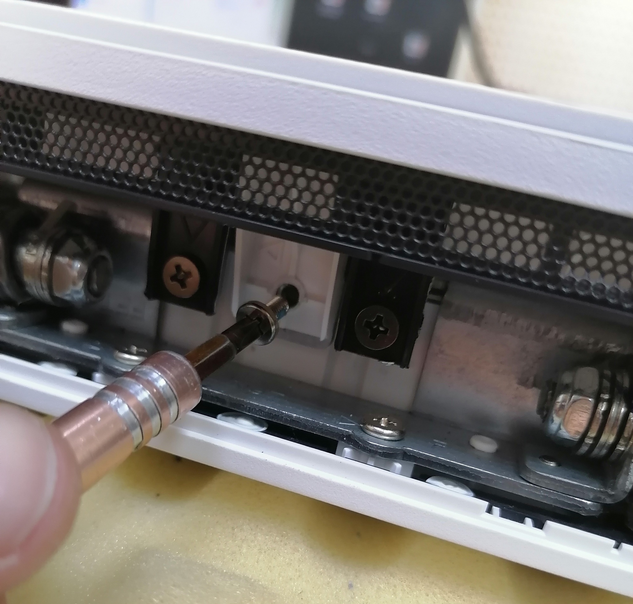 Достаем ножку с ее законного места и выкручиваем еще винт крепления передней заглушки.
