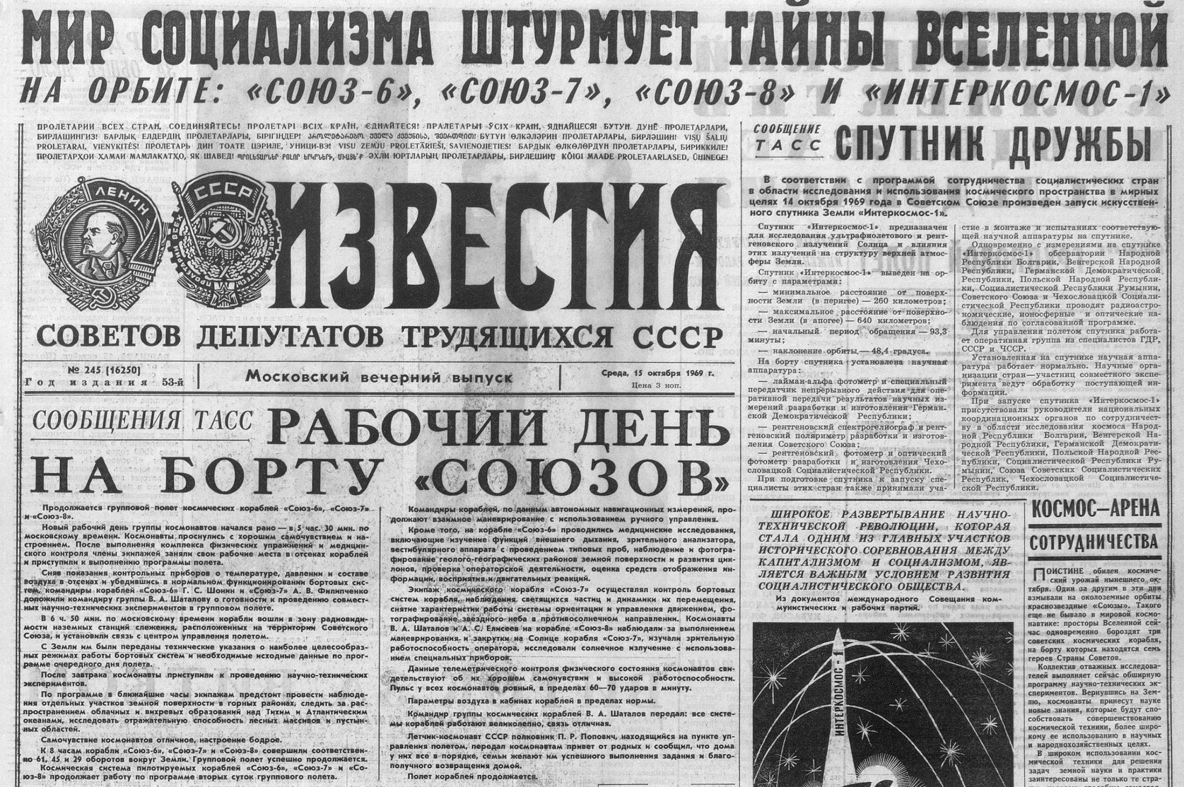 Осенью 1968 года делается попытка состыковать на орбите Союз-2 и Союз-3. И, кроме того, Союз-3 с Береговым это первое успешное приземление с человеком на борту, и про это в вышеприведённой статьи про Зонд-5 тоже есть. Уточню, что статья называется "От Луны на Землю" и опубликована в ноябре 1958 года.