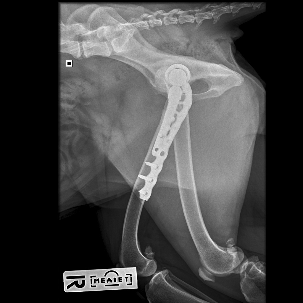 Съездили к нашему доктору на снятие швов. Процедура прошла быстро, он тщательно все осмотрел, покрутил лапу, проверил как собака ходит, ответил на все наши вопросы и отпустил на 1,5 месяца до контрольного рентгена.