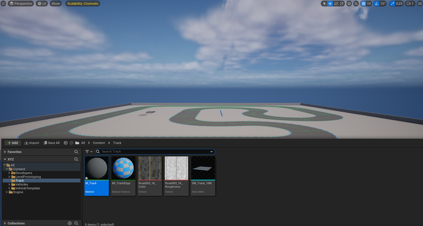 Далее в Content Drawer откройте папку Track. Перетащите в Unreal обе карты из папки, куда их сохраняли.