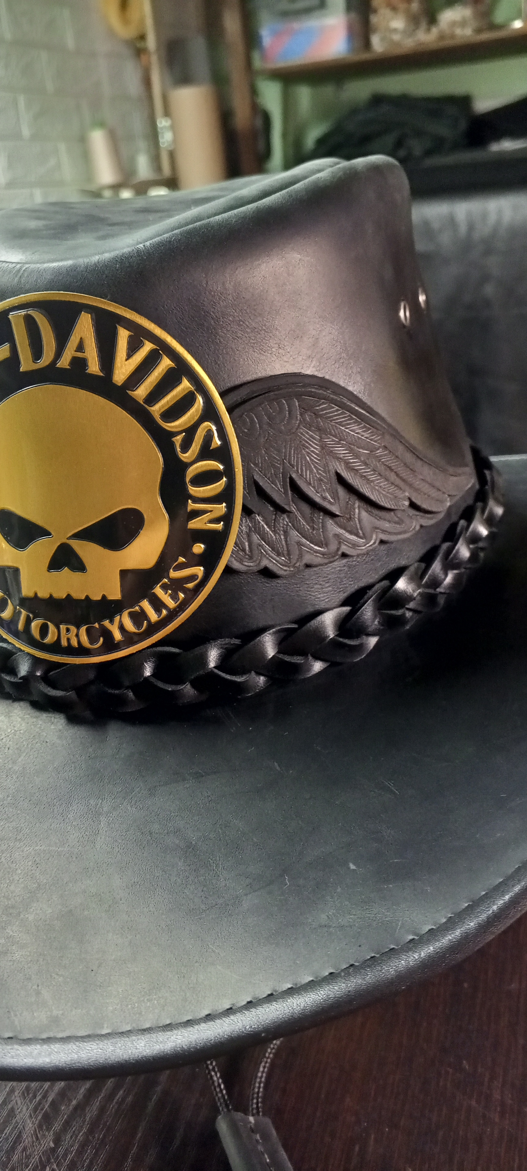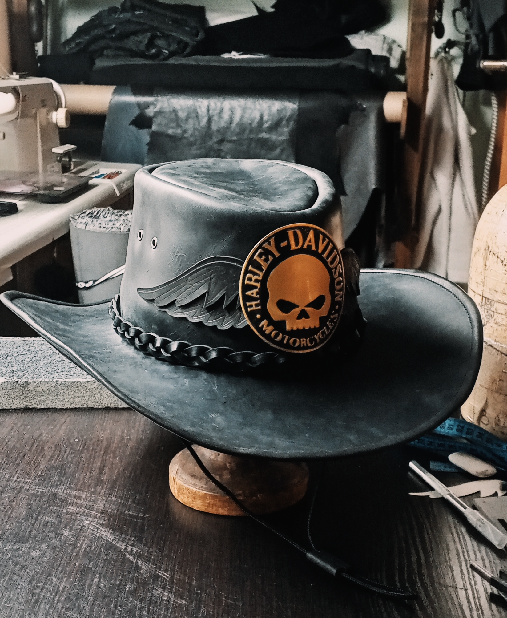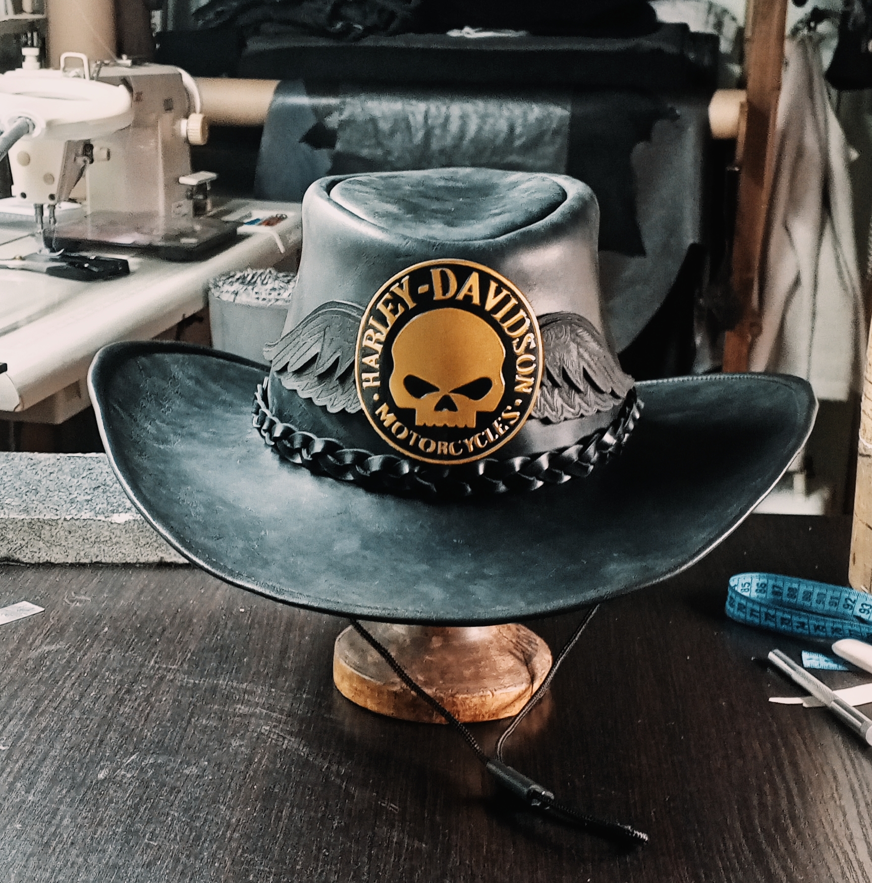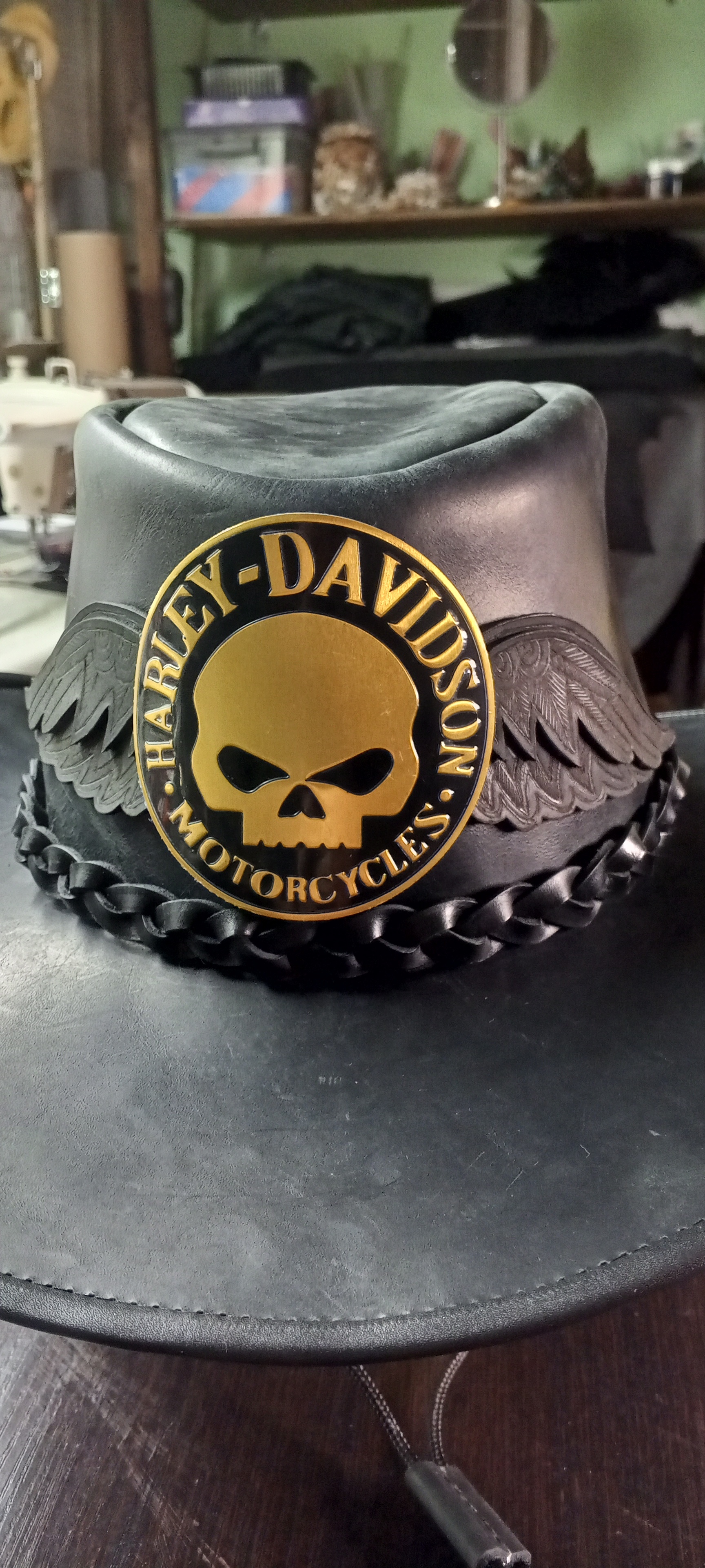 Процес изготовления кожаной шляпы "Harley Крылья" (Осторожно, таймлапс!)
