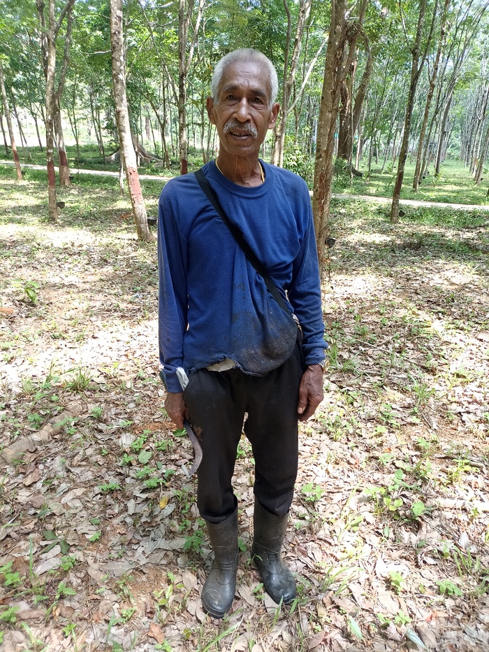 Итак, я арендовал велосипед и отправился исследовать этот крохотный остров, сплошь засаженный ровными рядами Гевеи. В какой-то момент я заметил мужчину, переходившего от одного дерева к другому с металлическим предметом в руках. Ну и конечно, моё любопытство не дало мне проехать мимо.