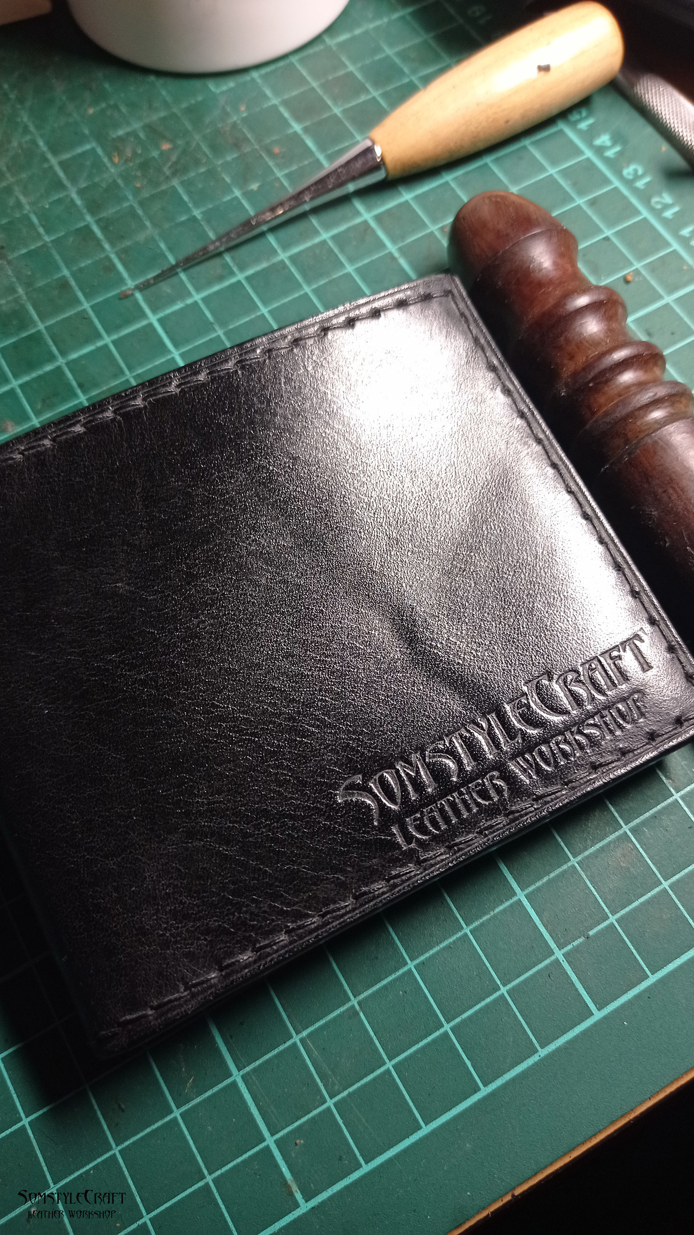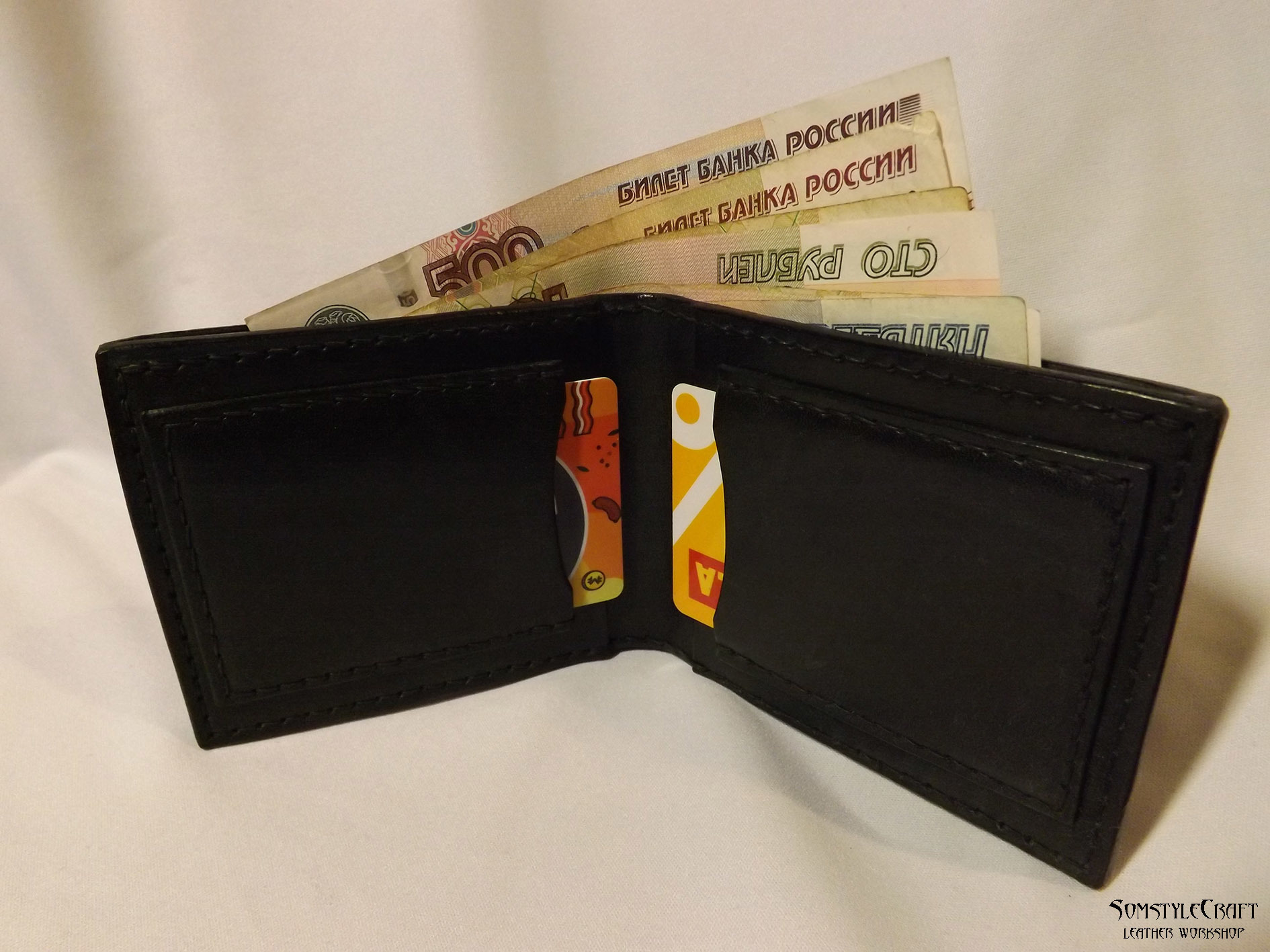 Очередной кошелёк, выкройка от Никитина. Кожа использована толщиной 1,8 мм, многовато. Вполне достаточно 1,2-1,4 мм, но задумка была сделать именно «тяжёлую» вещь.