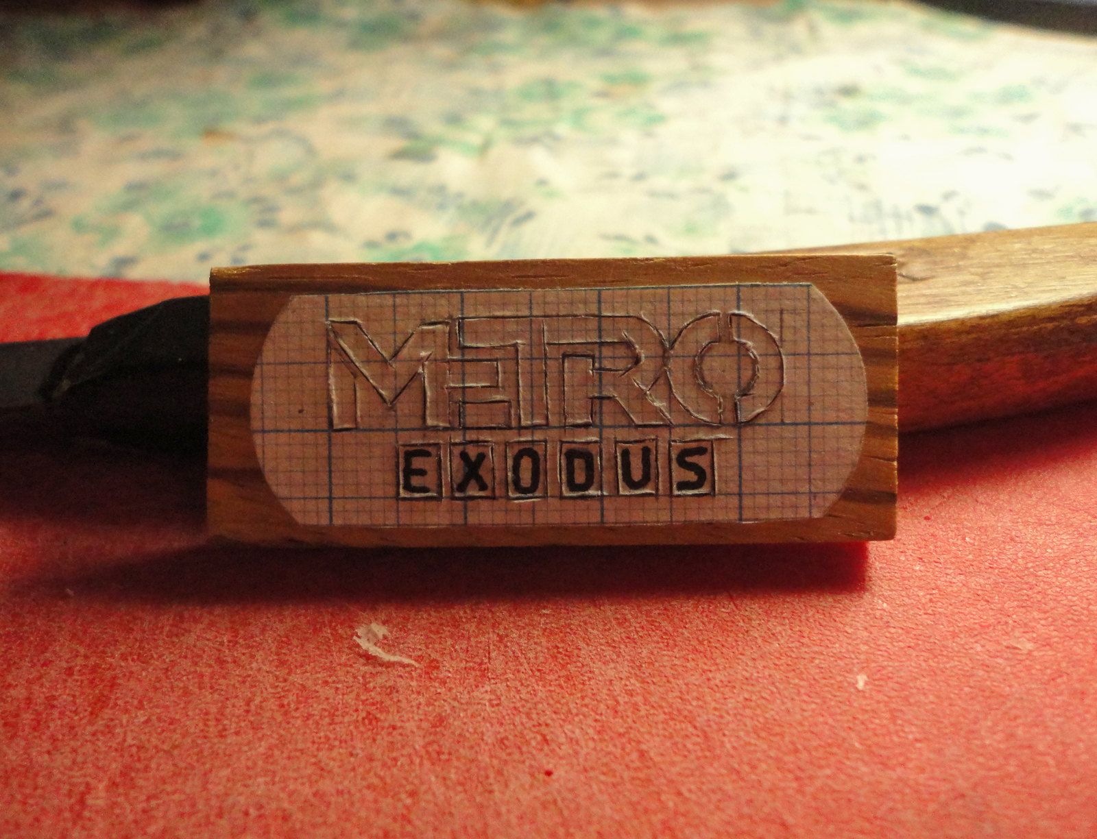 6) Вырезаем большие буквы глубиной 2-2,5 мм, делаем это максимально аккуратно, чтобы не испортить стенки и углы. Малые буквы будет достаточно вырезать на 1-1,5 мм.