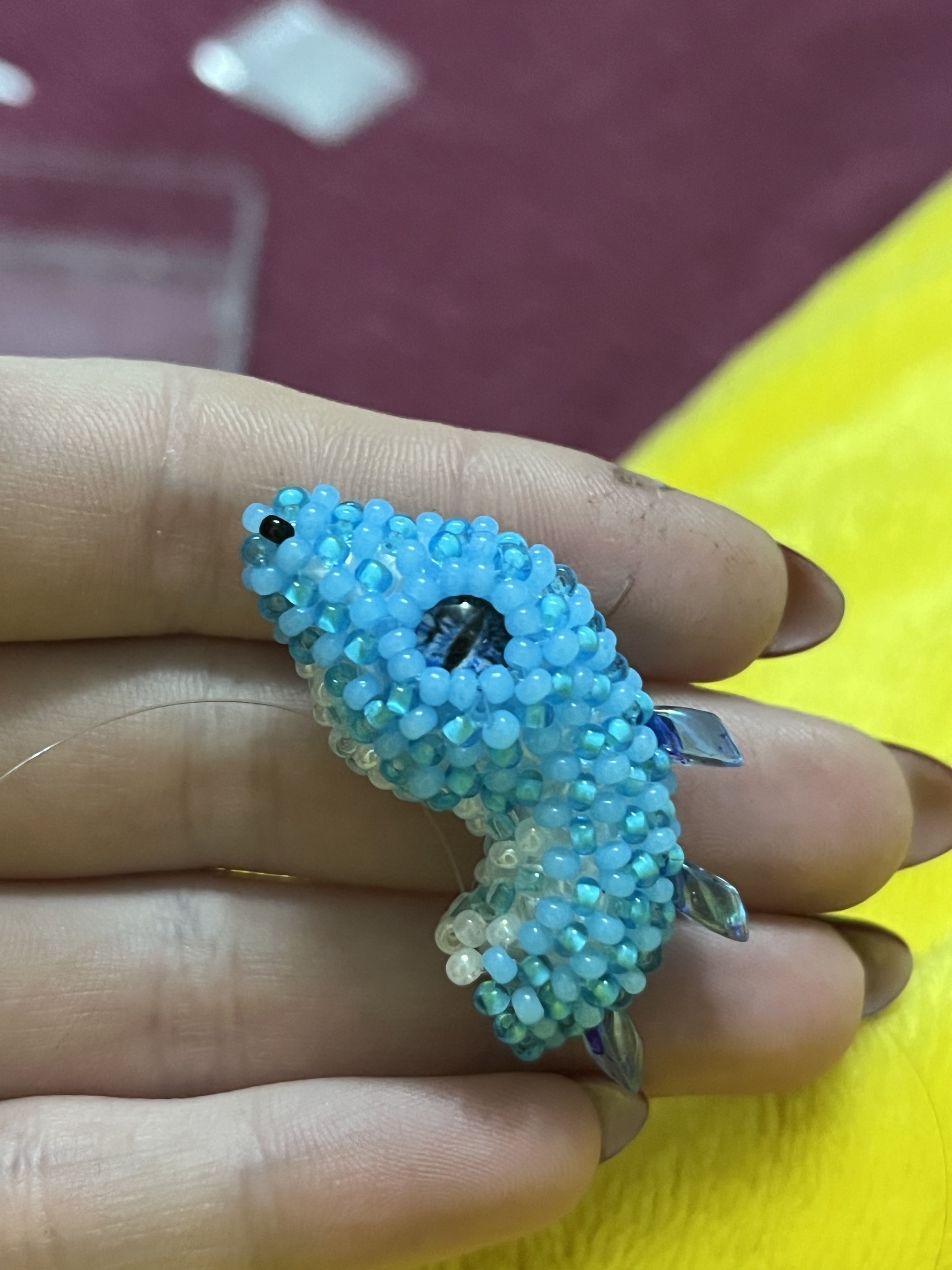 Крылья делаются в последнюю очередь, когда готовы передние лапки. Плетение крыльев начинается и присоединяются от лап. Потом делаются прожилки на крыльях и наша фигурка готова. Таким образом я делаю и другие фигурки из бисера. Все, можно идти на фотосессию)