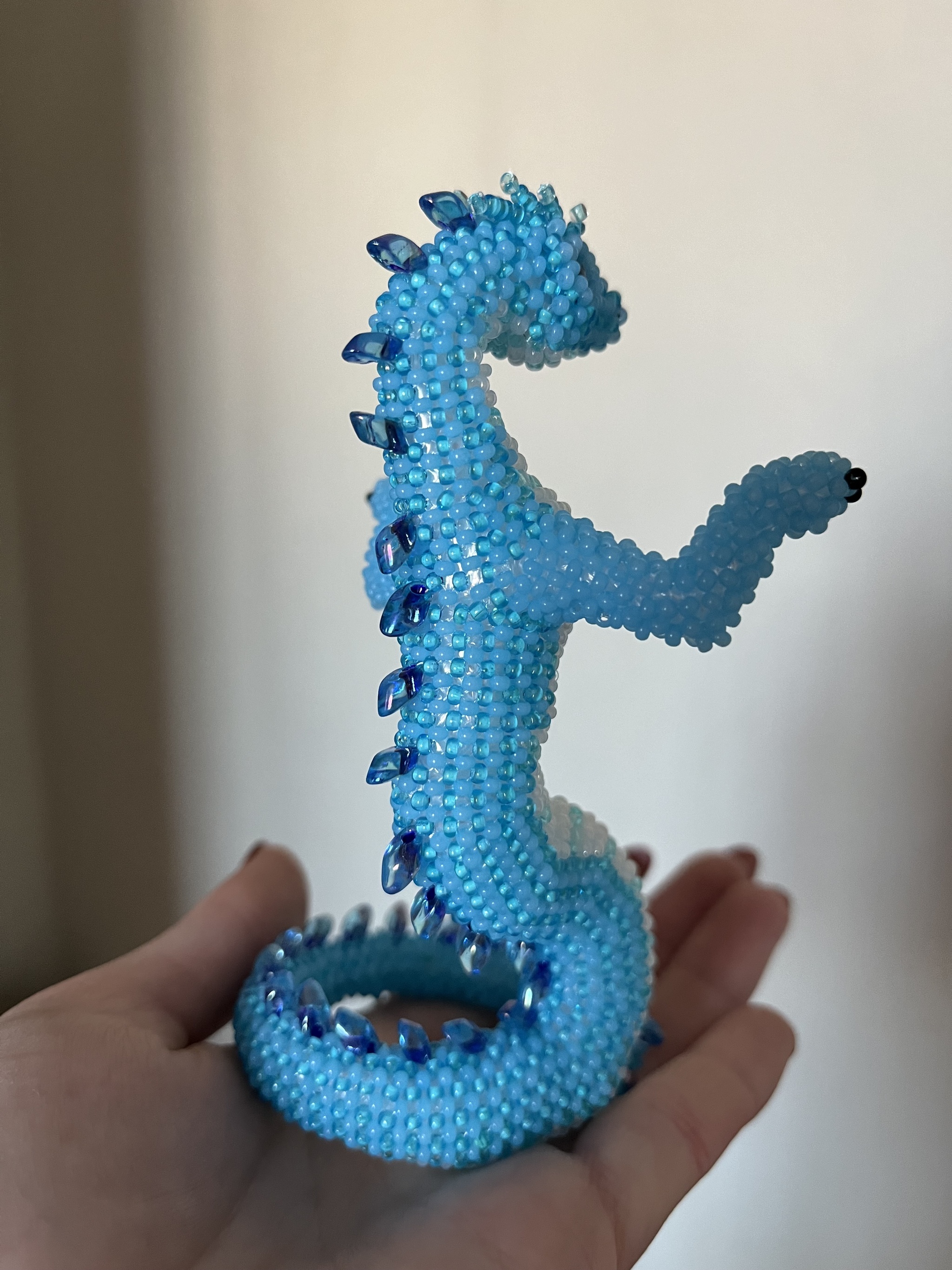 Для гребня дракона вплетала японские бусины Миюки. Их разного цвета и размера можно найти в творческих магазинах и на разных маркетплейсах.