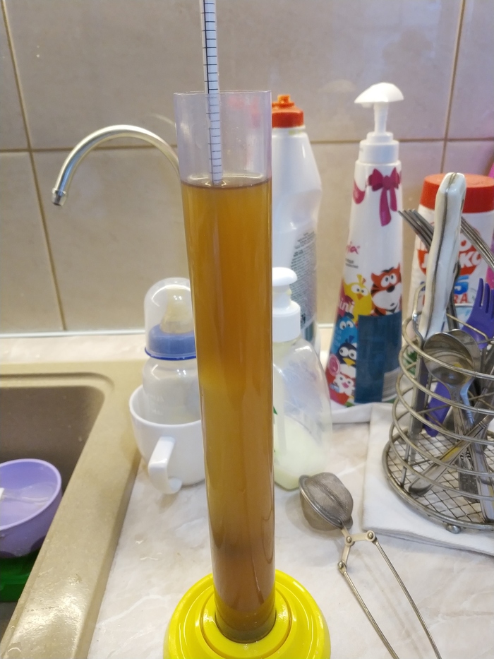 Ещё нужно измерить начальную плотность сусла, чтобы потом вычислить количество алкоголя в пиве (делается это после окончания брожения, когда будет известна конечная плотность).