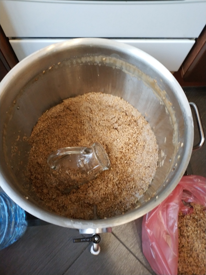 Я добавляю промывочную воду до тех пор, пока дробина не станет пресной на вкус. Зачерпнули ложку, попробовали, пресная-значит хорош.